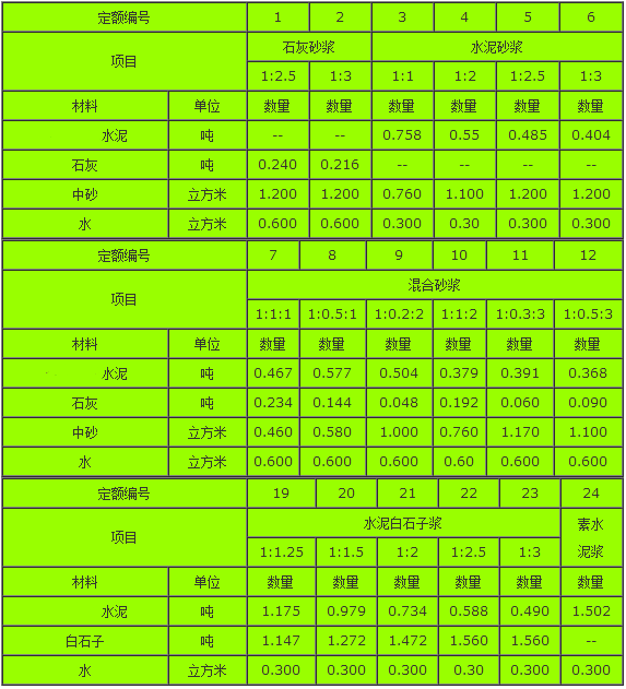 抹灰砂浆配合比表