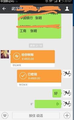 我展示了一个我的客户和交易转款,他没和我签合同